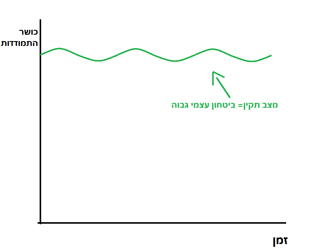 הגרף הזה הוא כושר ההתמודדות שלנו מול מצבים בחיים: עימות, ריב, מתח וכו'.
